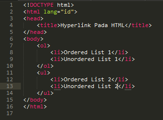Ordered list berfungsi untuk menampilkan daftar list dalam bentuk huruf atau angka. Tag yang digunakannya adalah tag OL.
