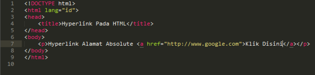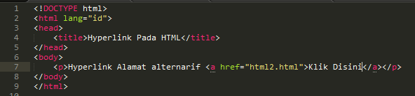 Hyperlink atau sering disebut juga dengan link berfungsi untuk menghubungkan antara satu dokumen dengan dokumen yang lainnya pada HTML. Tujuan dari hyperlink ini adalah untuk membuat sebuah teks atau gambar yang ketika di klik akan dialihkan ke halaman tertentu yang sudah ditetapkan dalam penulisan hyperlink tersebut.